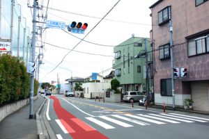 ① 二日町駅入口交差点を直進します。↓