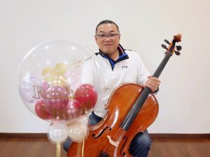 中学時代に吹奏楽でのバリトンサックスの演奏をきっかけに低音楽器に魅了され、14歳からチェロを始める。